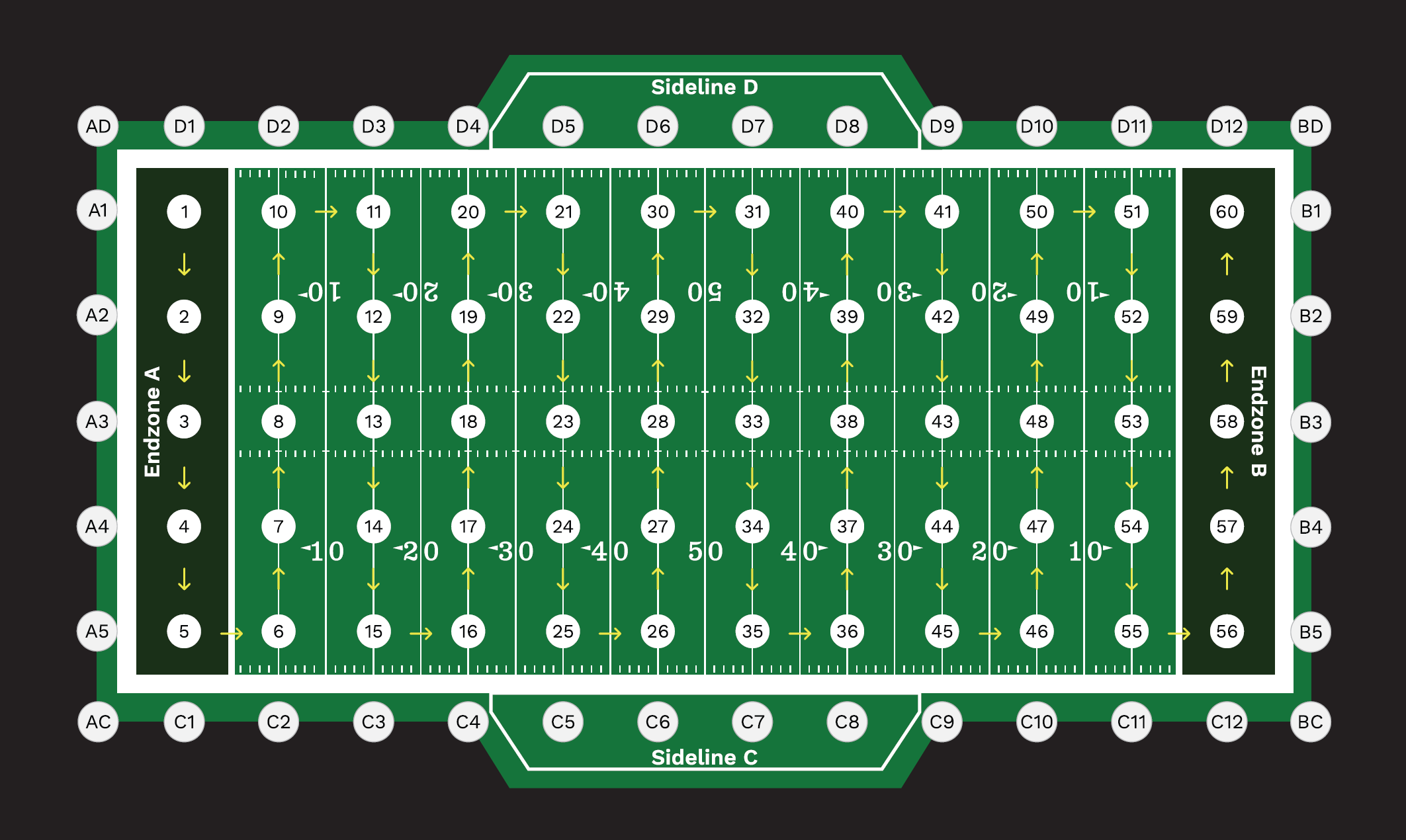 Identify Endzones A and B prior to testing. This will determine the direction in which STRIKE testing occurs.